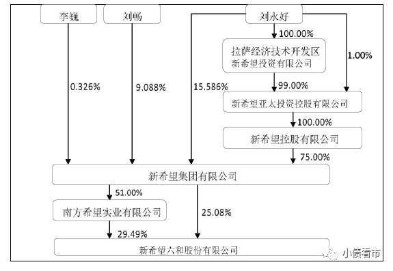 從股權結構看,新希望集團直接持有新希望25.07%股權,通過南方希望間接持有29.49%股份,為公司控股股東,劉永好為新希望實控人。