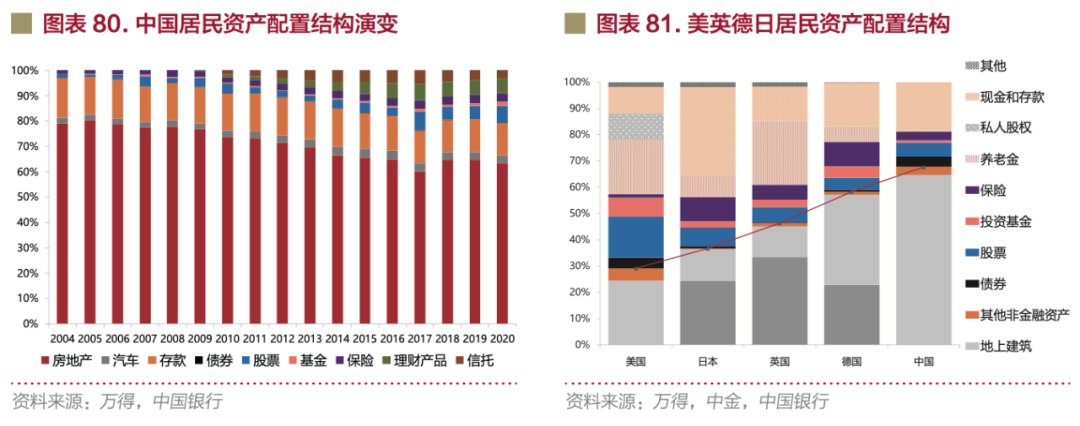 同時,在“共同富裕”和“房住不炒”政策背景下,多渠道增加居民財產性收入,中國居民家庭資產結構面臨再平衡,降低房地產資產配比同時增加金融資產配比大勢已成且呈加速之勢。