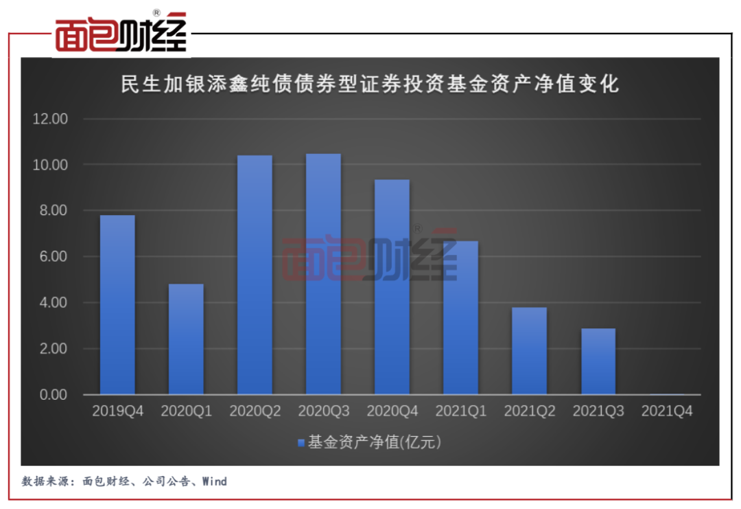 民生加銀添鑫純債債券型證券投資基金成立于2019年8月,初始基金經(jīng)理為陸欣。2021年7月,胡振倉新任基金經(jīng)理,隨后陸欣于當(dāng)年8月離職。2019年末,民生加銀添鑫純債債券型證券投資基金的資產(chǎn)凈值約為7.81億元。到了2020年三季度末,該基金的資產(chǎn)凈值達(dá)到最高,約為10.49億元。但在此之后,基金資產(chǎn)凈值逐季下降,2021年四季度末時(shí)已只有約600萬元。