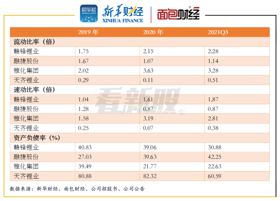 2019年至2021年前三季度,天齊鋰業(yè)資產(chǎn)負(fù)債率及流動比率等償債能力指標(biāo)均弱于可比上市公司。