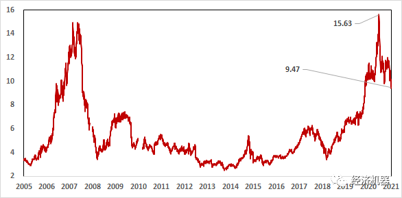 年初至今,核心資產確實進行了一波深度調整,部分個股調整較為充分。作為整體,PB估值從15.6倍,降至9.5倍,仍然偏高(圖x),降幅明顯,但絕對水平仍然不低。作為一個整體,核心資產調整仍不夠充分,仍存在均值回歸空間。