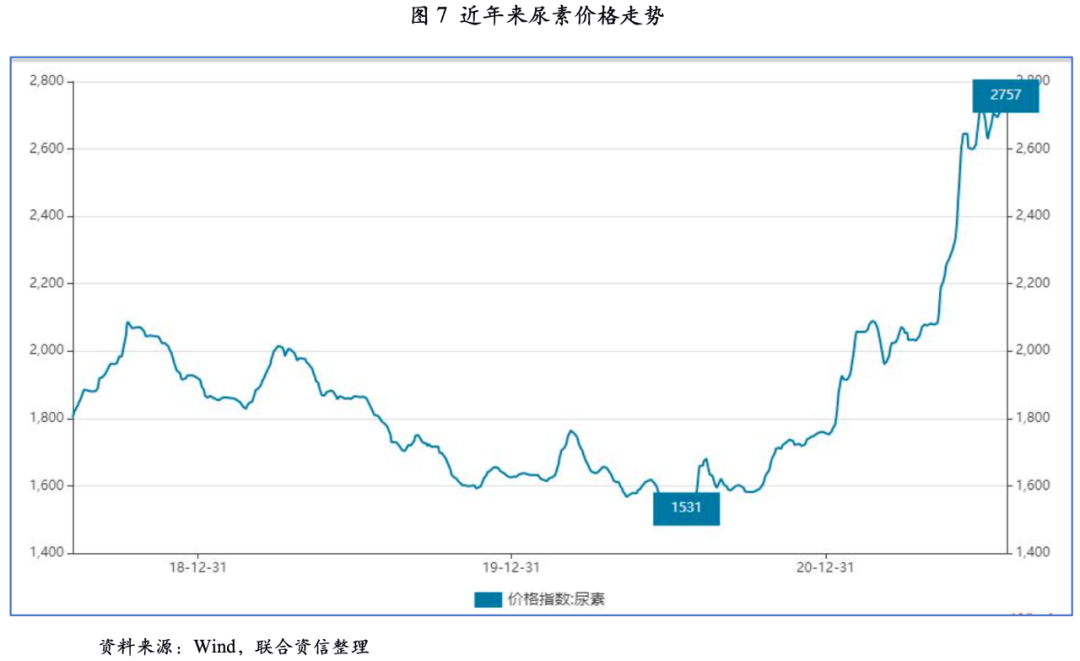 整體看,產能布局較多的產品為焦炭和尿素,其中單噸尿素的碳排放量大于焦炭,因此本文以尿素細分行業為例重點分析其現有發債企業經營情況、尿素行業價格走勢、成本構成因素、碳交易后對其成本及利潤的影響,進而探討未來可能的轉型路徑。