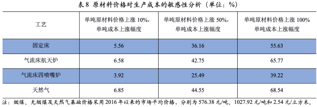 整體看,氣流床工藝的生產成本優勢顯著,特別是在當前“限電限產”以及煤炭價格處于高位的情況下,氣流床航天爐裝置的成本優勢更為明顯。