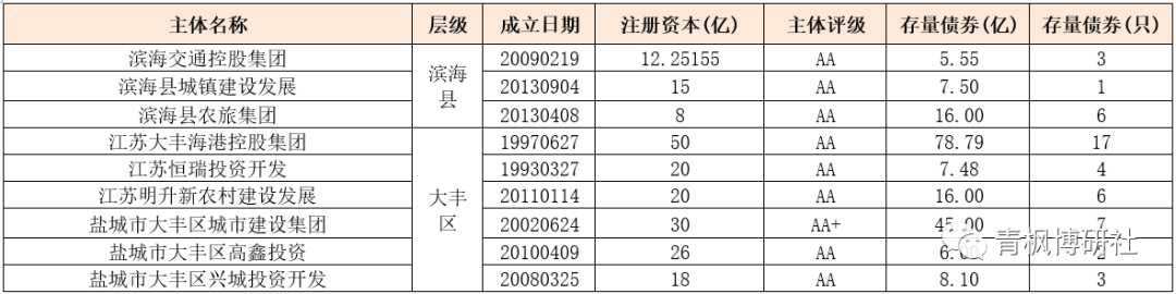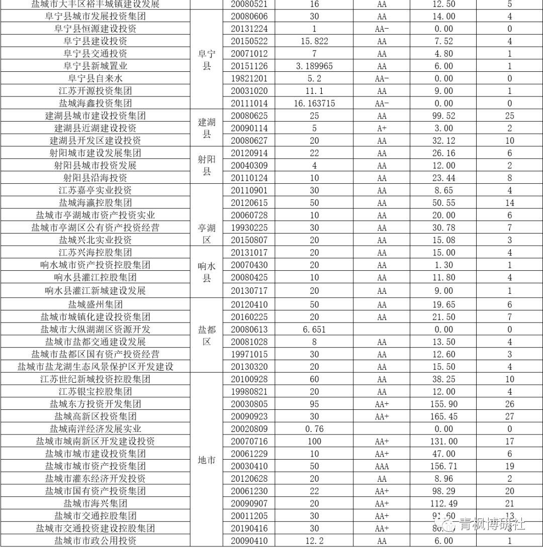 (三)目前江蘇鹽城地區(qū)有53家城投平臺,共有存量債券360只、債券余額為1789.04億元,要知道鹽城市一年的財政收入只有400多億元。特別是我們看到,江蘇鹽城大豐區(qū)目前有7只城投債券、余額合計為173.87億元,同樣表明大豐區(qū)的債務壓力較大。若考慮到鹽城地區(qū)的債務壓力本來就很多、市場認可度不高、融資成本明顯處于高位等因素,則基本可以判斷如果沒有金融體系的支持,或金融體系的支持不夠,意味著鹽城市及大豐區(qū)的債務壓力基本無解。