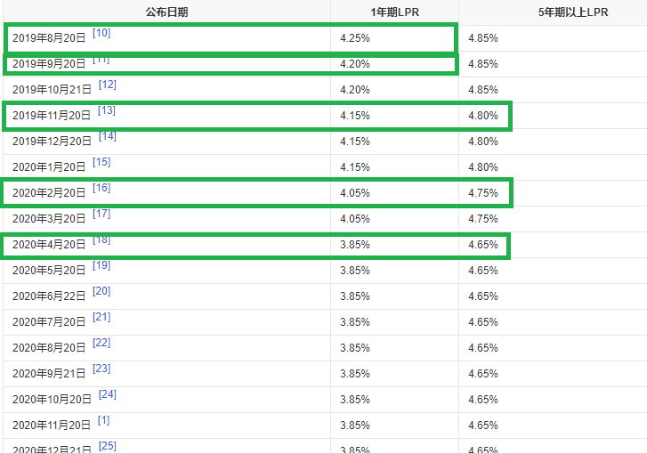 到了2020年4月,1年期LPR下調(diào)幅度更大,降至3.85%;同月5年期LPR降至4.65%,為LPR機(jī)制改革以來5年期最大下調(diào)幅度。