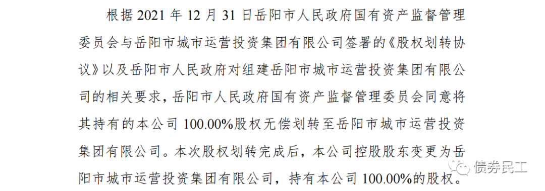 11、根據(jù)岳陽(yáng)市交通建設(shè)投資集團(tuán)有限公司(主體信用等級(jí)AA)2022年1月7日公告稱,公司股東變更為岳陽(yáng)市城市運(yùn)營(yíng)投資集團(tuán)有限公司。岳陽(yáng)市城市運(yùn)營(yíng)投資集團(tuán)有限公司未發(fā)行過(guò)債券。