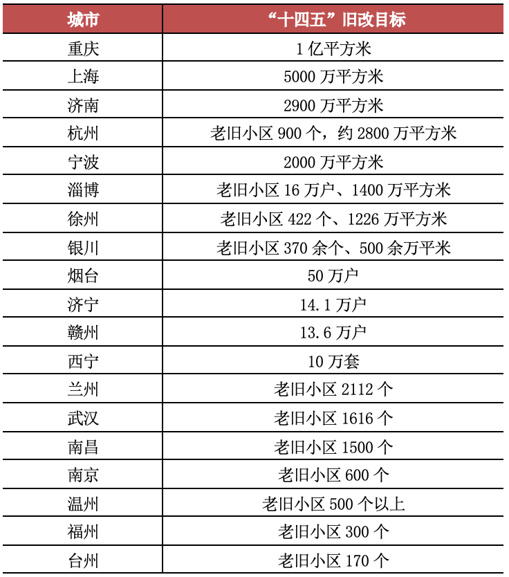表:19城“十四五”舊改目標