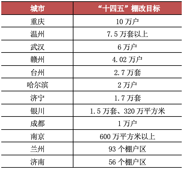 表:12城“十四五”棚改目標