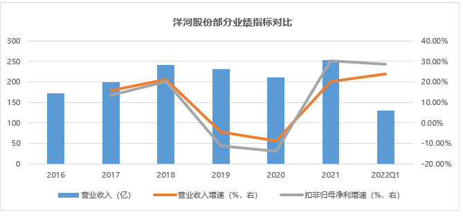 經(jīng)歷2年戰(zhàn)略調(diào)整期后,洋河股份(002304.SZ)(以下簡(jiǎn)稱洋河股份或洋河)用2021年的成績(jī)單,展示出一條上升軌道的新起點(diǎn)。2022年一季度開(kāi)局,洋河股份又再度邁上新臺(tái)階。在2022年兩個(gè)重磅會(huì)議——年度工作大會(huì)和營(yíng)銷動(dòng)員誓師大會(huì)上,“以干為先”成為會(huì)議的主旋律。“敢與強(qiáng)者比高下”、“一鼓作氣干到底”,洋河股份的“進(jìn)攻性”顯露無(wú)遺。洋河股份黨委書(shū)記、董事長(zhǎng),雙溝酒業(yè)董事長(zhǎng)張聯(lián)東上任,無(wú)疑給洋河注入了一針強(qiáng)心劑。當(dāng)前白酒行業(yè)不似2020年前,整體增長(zhǎng)放緩、存量博弈格局十分明顯。在這樣的市場(chǎng)環(huán)境下,“強(qiáng)勢(shì)”洋河的根源在哪里?通過(guò)智能化建設(shè)、全方位多層次激勵(lì)體系打造強(qiáng)執(zhí)行力團(tuán)隊(duì),洋河將加速跨越“二次創(chuàng)業(yè)”新階段。01 “十四五”強(qiáng)勢(shì)開(kāi)局,“二次創(chuàng)業(yè)”勢(shì)頭迅猛4月28日晚間,洋河發(fā)布了2021年及2022年一季度業(yè)績(jī)報(bào)告。相較于以往年份,這份報(bào)告用“超預(yù)期”來(lái)形容更為恰當(dāng)。數(shù)據(jù)顯示,2021年,公司實(shí)現(xiàn)營(yíng)業(yè)收入253.5億,同比增長(zhǎng)20.14%;扣非歸母凈利潤(rùn)73.73億元,同比增長(zhǎng)30.44%。自2018年以來(lái),在歷經(jīng)兩年調(diào)整期后,核心業(yè)績(jī)指標(biāo)再創(chuàng)歷史新高。