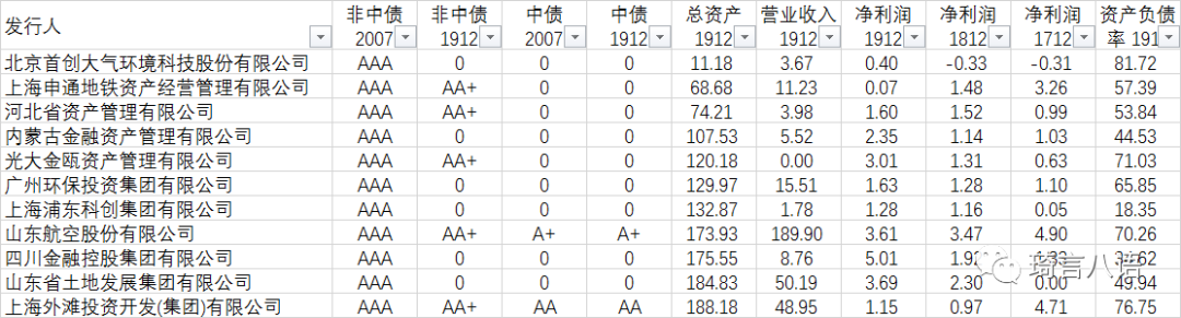 可以看出,其中有多家企業的總資產不足二百億,甚至不到一百億,記得以前AA+的資產規模門檻都有二百億的: