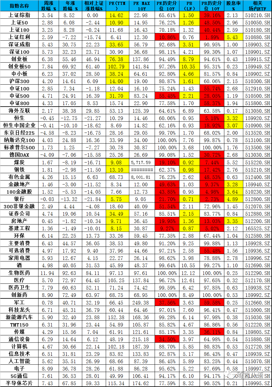 附二:市場重要指數 漲跌幅、估值、股息率、對應ETF等