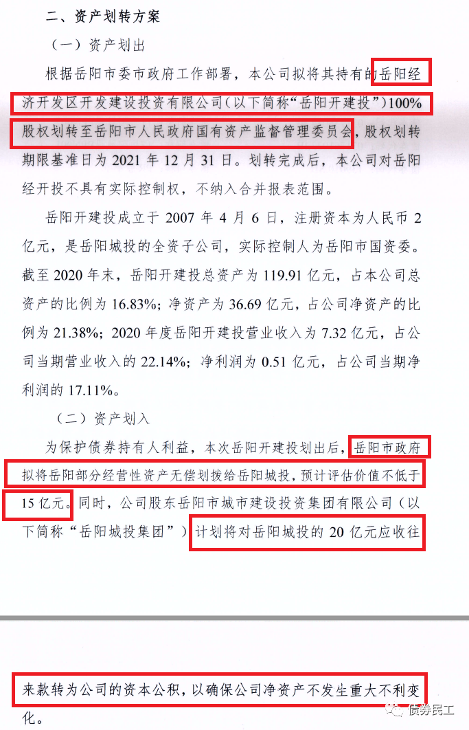 2、岳陽市城市建設(shè)投資有限公司公告,將公司持有的岳陽經(jīng)濟(jì)開發(fā)區(qū)開發(fā)建設(shè)投資有限公司的股權(quán)無償劃轉(zhuǎn)給岳陽市國(guó)資委。與此同時(shí),岳陽市政府?dāng)M將部分資產(chǎn)劃轉(zhuǎn)給岳陽市城市建設(shè)投資有限公司,保障公司的盈利能力和償債能力不受此次資產(chǎn)無償劃轉(zhuǎn)的影響。