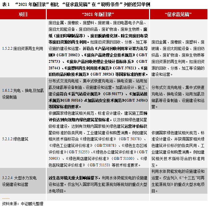 “2021年版目錄”與征求意見稿在一級、二級、三級、四級分類上保持一致,差異體現(xiàn)在項目的“說明/條件”,“2021年版目錄”在部分項目的“說明/條件”列更加具體細(xì)化了項目的要求,一方面進一步增加目錄的可操作性,另一方面也提高了部分項目的相關(guān)標(biāo)準(zhǔn)。在具體操作時,一定要仔細(xì)閱讀“2021年版目錄” 中各項目“說明/條件”列的相關(guān)要求。
