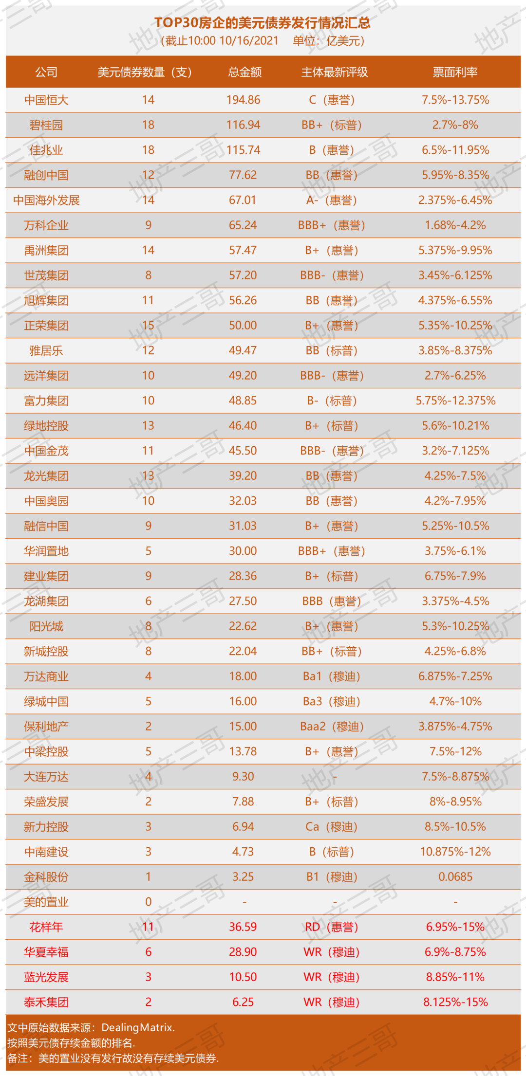 原標(biāo)題: TOP30房企美元債的情況和思考