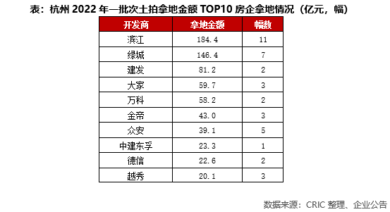 值得一提的是,杭州土拍中,民企表現(xiàn)相對積極:濱江、綠城、眾安、德信等多家房企均報(bào)名參拍了多宗土地,尤其是濱江在首輪供地中拿下了11幅地塊,拿地金額超過180億元,綠城也競得7宗地塊,總金額接近150億。也體現(xiàn)了此類房企對于杭州市場前景的肯定,以及對區(qū)域深耕戰(zhàn)略的堅(jiān)持。
