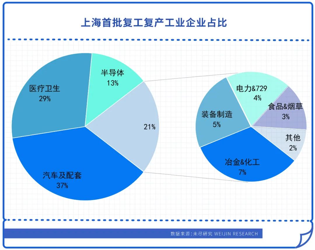 2022年4月16日,上海市經信委出臺“白名單”,準許666家企業重新開工。從企業名單來看,產業覆蓋集成電路、汽車制造、裝備制造、生物醫藥等重點行業。