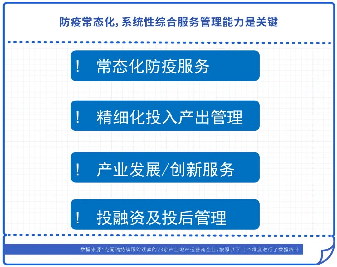 二是園區優質運營成為企業必選項,疫情考驗著園區的和服務的效率和專業程度。如協助園區企業推進復工復產審批及政策申報;以園區為單位建立與政府對接的“專用通道”,解決企業復工復產后的餐飲、住宿、通行證、核酸檢測服務等問題。