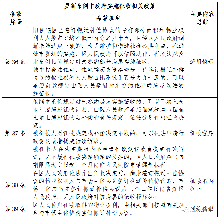 (一)更新條例中政府實(shí)施征收的相關(guān)政策