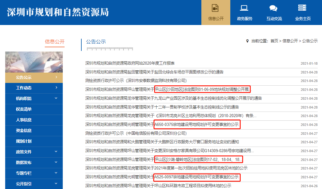 4月25日,深圳規自局發布《深圳市2021年度建設用地供應計劃》。
