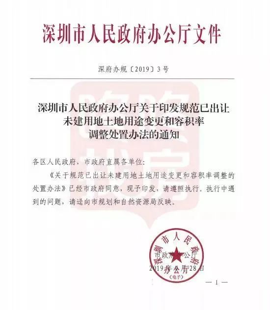 早在2019年,深圳發布《關于規范已出讓未建用地土地用途變更和容積率調整處置辦法的通知》。