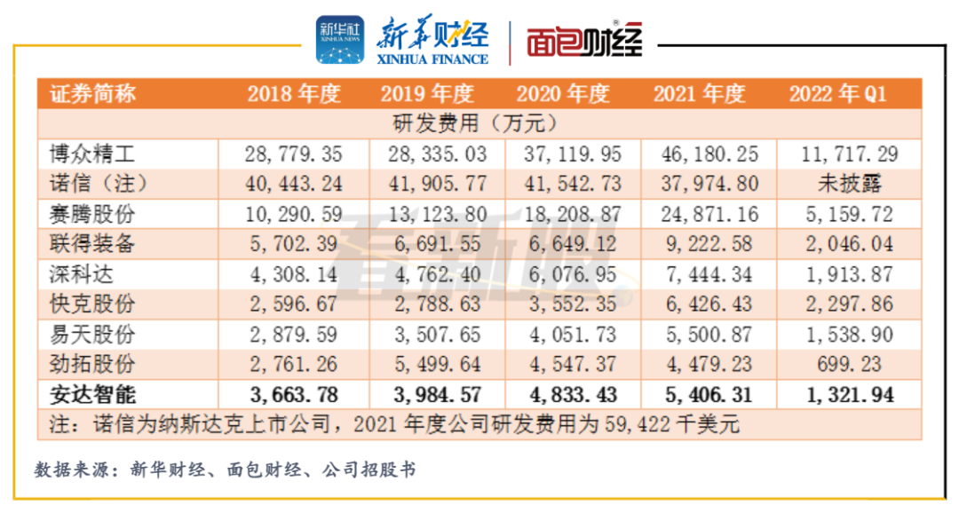 身為科創板新上市的智能制造裝備業公司,安達智能當前的研發投入和研發能力或難具優勢。