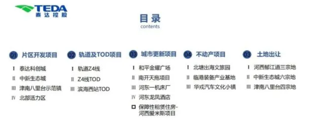 另外,風財訊獲悉,4月13日,天津泰達城投集團啟動了“優質項目招商推介”,包含片區開發項目、軌道及TOD項目、城市更新項目、不動產項目及土地出讓五大板塊。