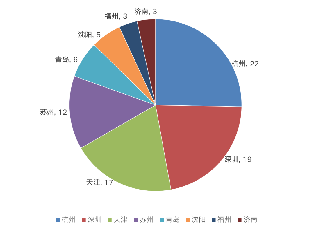 CRIC對上述完成出讓的8個城市共326宗土地情況進行系統梳理,高單價(起拍單價超過1萬元/平米)的土地幅數共有87宗,占比高達27%,主要分布在杭州、深圳、天津和蘇州四個城市,分別有22、19、17和12宗,優質地塊比較集中。
