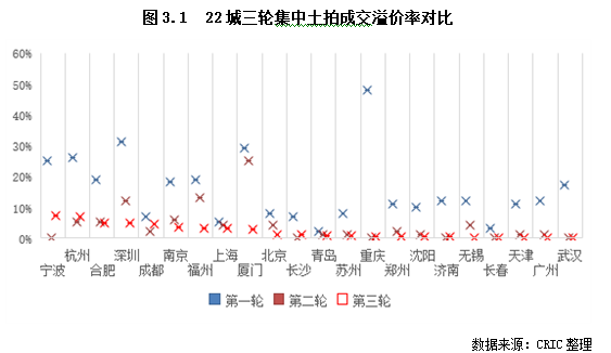 由于多數(shù)城市第三輪土拍規(guī)則均有調(diào)整,不同城市的土拍表現(xiàn)明顯分化。因此,在本章我們將聚焦到城市層面,來(lái)關(guān)注重點(diǎn)城市第三輪土拍的差異及較第二輪的變化。