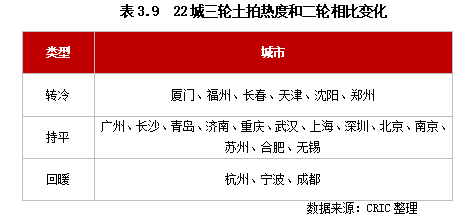 3)三輪土拍明顯回暖的城市