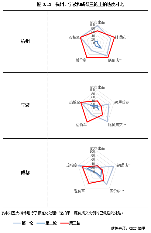 4、城市分化:規(guī)則放松疊加樓市表現(xiàn)向好,助力杭甬蓉三輪土拍回暖