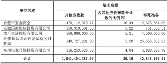 2017年底國(guó)購?fù)顿Y前五大其他應(yīng)收款明細(xì)