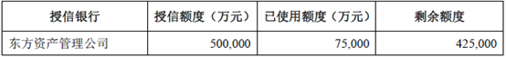 (2)、再融資空間非常小。截至2017年底,發(fā)行人已獲得工行、建行、中行等多家金融機(jī)構(gòu)共計(jì)210億元的授信額度,已使用156億元,剩余授信額度為54億元??雌饋砉具€有較大規(guī)模的銀行授信沒用,但拆分細(xì)看可知剩余未用授信中最主要來自于東方資產(chǎn)管理公司,集中度太高,而且這種AMC的授信一般成本很高。