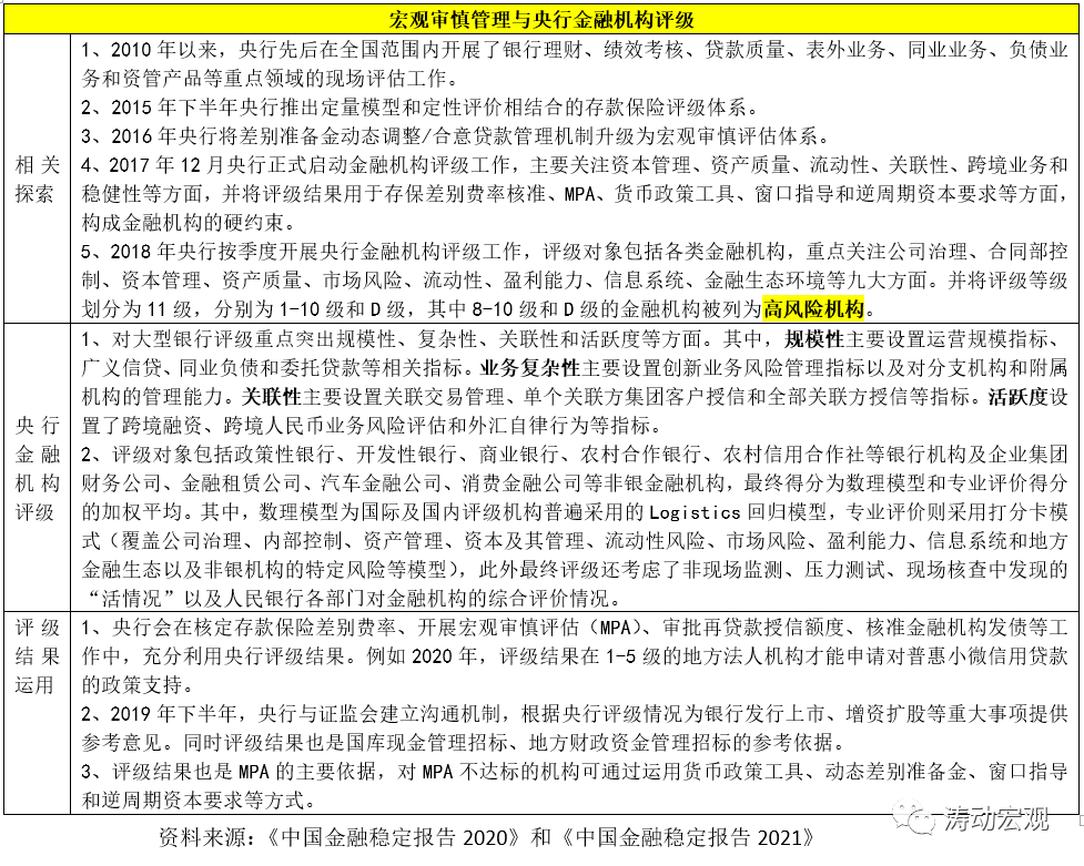 除銀保監會的監管評級外,還應關注另外兩類評級體系,一是央行主導的金融機構評級(詳見于每年發布的《中國金融穩定報告》),二是銀行業協會主導的陀螺評級體系。相較而言,央行金融機構評級體系更為值得關注。