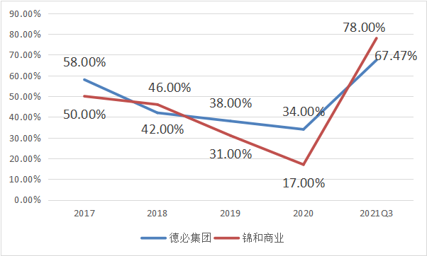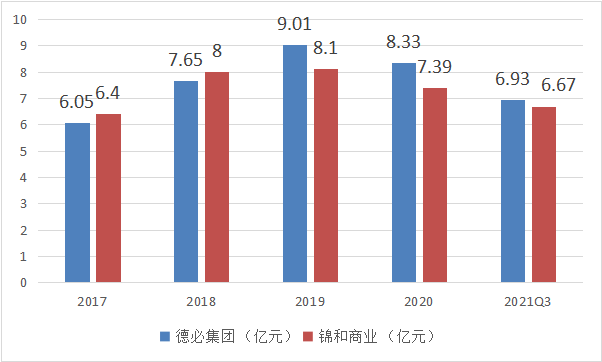 營(yíng)業(yè)收入:德必集團(tuán)營(yíng)收反超錦和商業(yè)