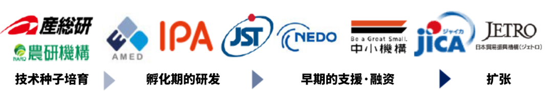 ▼ 一系列產(chǎn)業(yè)支援機(jī)構(gòu),組成了創(chuàng)業(yè)的流程化生態(tài)支持(來源:日本內(nèi)閣府官網(wǎng)資料)