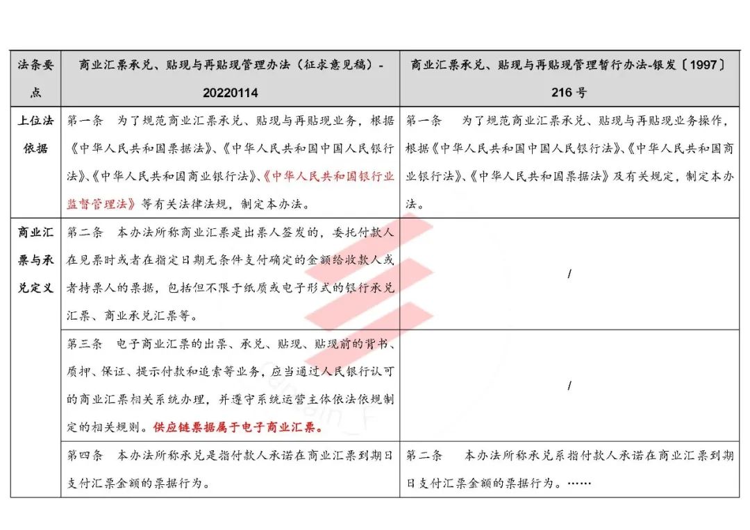 商業匯票承兌、貼現與再貼現管理辦法(征求意見稿)新舊對比