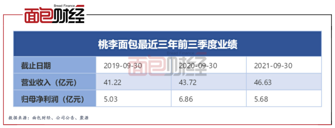 進(jìn)入2021年以來,桃李面包的歸母凈利潤(rùn)出現(xiàn)持續(xù)下滑,第一季度、第二季度分別同比下降16.27%和7.52%。最新披露的第三季度業(yè)績(jī)顯示,公司歸母凈利潤(rùn)增速進(jìn)一步下降至-25.82%。