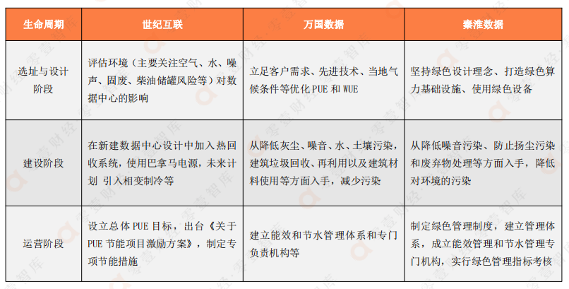 表:三家數據中心廠商的全生命周期綠色數據中心建設