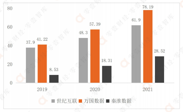 圖:三家數據中心廠商的營業收入(單位:億元)