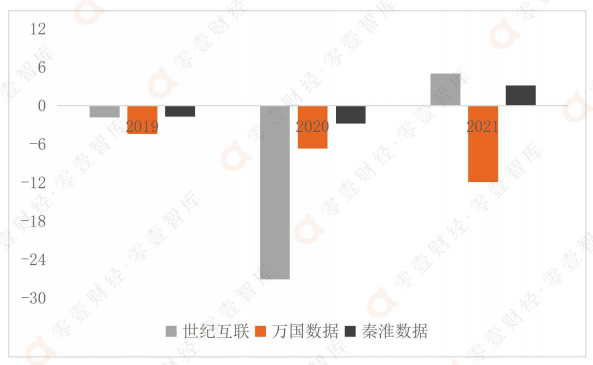圖:三家數據中心廠商的營業收入同比變化情況