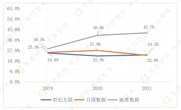 毛利率方面,三家數據中心廠商中,秦淮數據的毛利率高于萬國數據和世紀互聯,且總體上呈上升趨勢,2021年,秦淮數據的毛利率為42.1%;2021年,世紀互聯毛利率已超過萬國數據,為23.2%;萬國數據的毛利率在2021年出現下降,從2020年的27%下降至22.8%。
