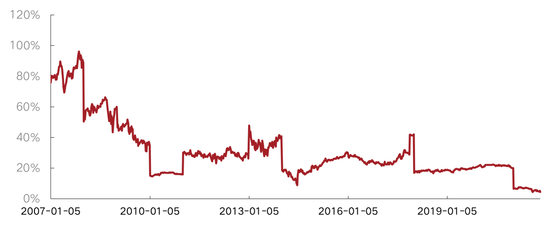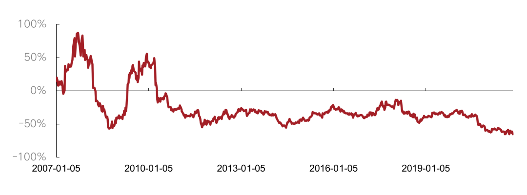 注:恒生中國內地地產指數(shù)的推出主要是為了反映前10只市值最大、流通性最高,在香港上市但主要營業(yè)收入來自中國內地的房地產股票表現(xiàn)。當前成分股共10只,分別為:中國金茂、中國海外發(fā)展、世茂集團、龍湖集團、華潤置地、龍光集團、碧桂園、中國恒大、碧桂園服務、融創(chuàng)中國