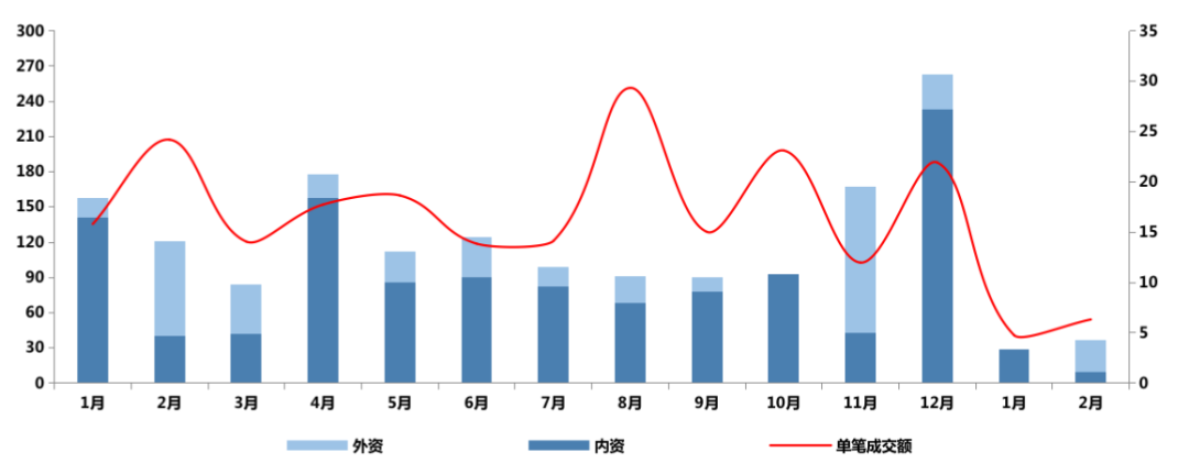 事實(shí)上,自2020年起,受全球疫情和整體經(jīng)濟(jì)大環(huán)境不確定性影響,2020年全國(guó)外資大宗總成交額不足500億元,為近三年最低,內(nèi)資已然成為國(guó)內(nèi)大宗交易市場(chǎng)的絕對(duì)主力。