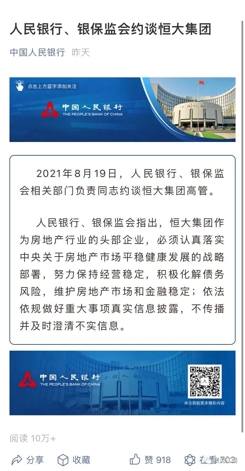 人民銀行、銀保監會約談恒大集團,恒大集團今日回應
