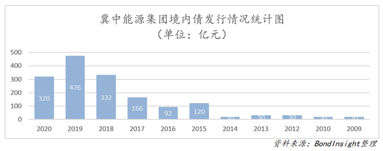 集團(tuán)旗下發(fā)債平臺共計(jì)四個,分別為冀中能源股份有限公司、華北制藥股份有限公司、冀中能源國際物流集團(tuán)有限公司和冀中能源峰峰集團(tuán)有限公司。冀中能源集團(tuán)有限責(zé)任公司作為母公司是主要發(fā)債主體,截至2021年4月15日,冀中能源集團(tuán)存續(xù)的境內(nèi)債共19支,合計(jì)約165.5億元,無存續(xù)境外債。