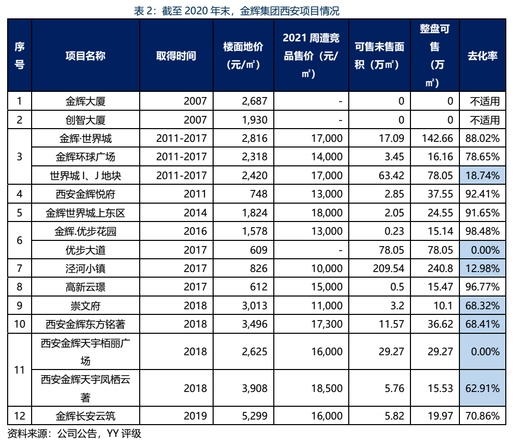 金輝西安整體項目布局解決了拿地單方成本過高的問題,但投資性物業建面過小疊加去化難題。