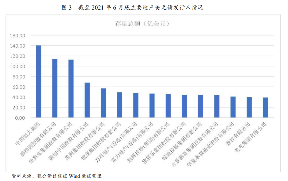 從存量規(guī)模來看,中國恒大集團、碧桂園控股有限公司、佳兆業(yè)集團控股有限公司美元債存量規(guī)模位居市場前列。