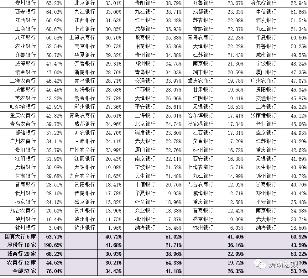 2、上市銀行零售貸款占全部貸款的比例平均為34.43%,股份行與國有大行最高(分別為41.68%和40.72%),城商行與農商行次之(分別為30.93%和30.21%)。