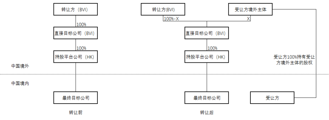 在該種交易模式下,中方投資者通常通過在境外設立公司收購中國境外目標公司。根據境外投資的相關法律法規,中方投資者在境外新設企業均需辦理境外投資備案,備案的手續可參照上述第2點,但值得注意的是,在辦理境外投資備案時,政府部門特別關注境外投資的真實性和合法性,新設的平臺公司無法通過備案。