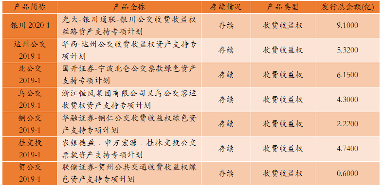 截至目前,市場上存續公交收費收益權ABS共23單,總規模159億。其中2020年掛牌的一共有5只,分別是銀川2020-1于4月16日掛牌;達州公交2019-1于1月9日掛牌;北公交2019-1于1月15日掛牌;烏公交2019-1于2月24日掛牌;銅公交2019-1于1月10日掛牌。